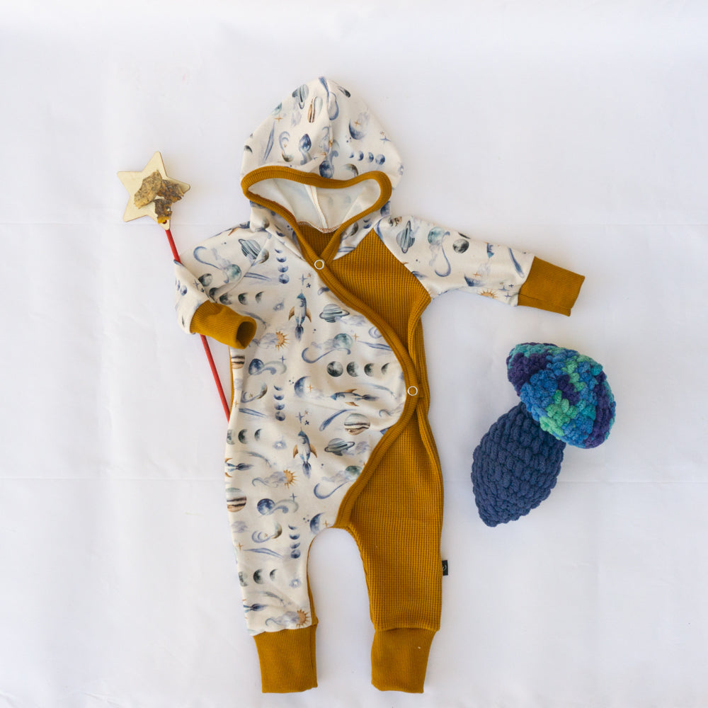 Each design is hand painted by artists from across North America and beyond. Each selection is printed onto organic cotton using a printer in the USA, and then shipped to my door, where I hand sew the latest releases. This season, the various long sleeve tops pair perfectly with any of the new designs, allowing you to mix/match and build a little capsule for the little one in your life.